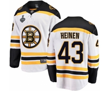 Men's Boston Bruins #43 Danton Heinen Authentic White Away Fanatics Branded Breakaway 2019 Stanley Cup Final Bound Hockey Jersey
