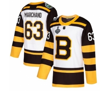 Men's Boston Bruins #63 Brad Marchand Authentic White Winter Classic 2019 Stanley Cup Final Bound Hockey Jersey