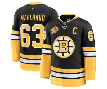 Men's Boston Bruins #63 Brad Marchand Black 100th Anniversary With C Patch Stitched Hockey Jersey