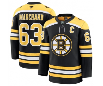 Men's Boston Bruins #63 Brad Marchand Black 2024-25 Home Stitched Hockey Jersey