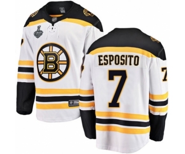 Men's Boston Bruins #7 Phil Esposito Authentic White Away Fanatics Branded Breakaway 2019 Stanley Cup Final Bound Hockey Jersey