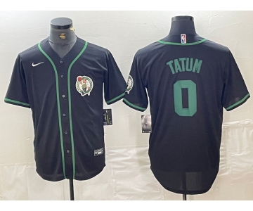Men's Boston Celtics #0 Jayson Tatum Black With Patch Cool Base Stitched Baseball Jersey