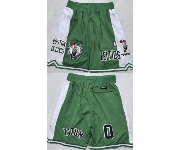 Men's Boston Celtics #0 Jayson Tatum Green White Shorts