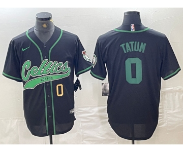 Men's Boston Celtics #0 Jayson Tatum Number Black Cool Base Stitched Baseball Jersey