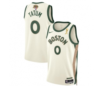 Men's Boston Celtics #0 Jayson Tatum White 2024 Finals Champions City Edition Stitched Basketball Jersey
