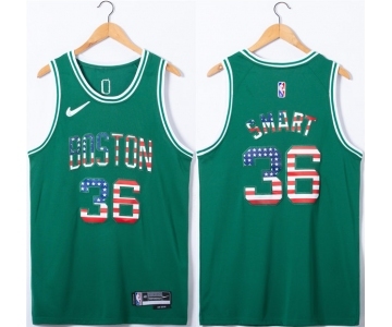 Men's Boston Celtics #36 Marcus Smart USA Flag Green Stitched Jersey
