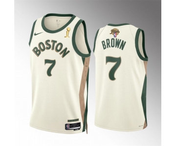 Men's Boston Celtics #7 Jaylen Brown 2024 Finals Champions City Edition Stitched Basketball Jersey