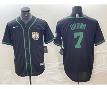 Men's Boston Celtics #7 Jaylen Brown Black With Patch Cool Base Stitched Baseball Jersey