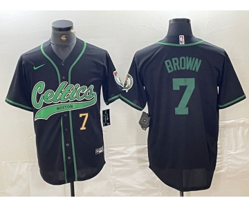 Men's Boston Celtics #7 Jaylen Brown Number Black Cool Base Stitched Baseball Jersey