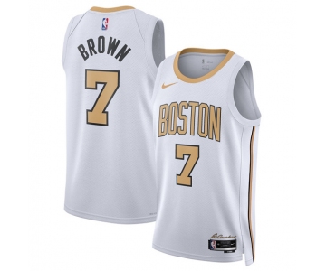 Men's Boston Celtics #7 Jaylen Brown White 2025-26 City Edition Swingman Stitched Basketball Jersey