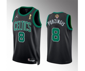 Men's Boston Celtics #8 Kristaps Porzingis Black 2024 Finals Champions Statement Edition Stitched Basketball Jersey