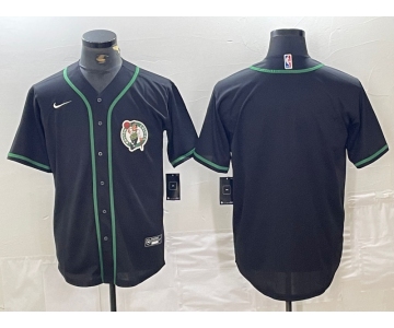 Men's Boston Celtics Black With Patch Cool Base Stitched Baseball Jersey