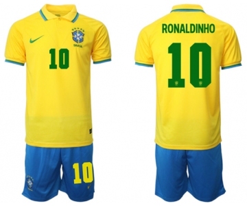 Men's Brazil #10 Ronaldinho Yellow Home Soccer Jersey Suit