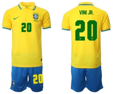 Men's Brazil #20 Vini Jr. Yellow Home Soccer Jersey Suit