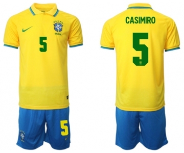 Men's Brazil #5 Casemiro Yellow Home Soccer Jersey Suit