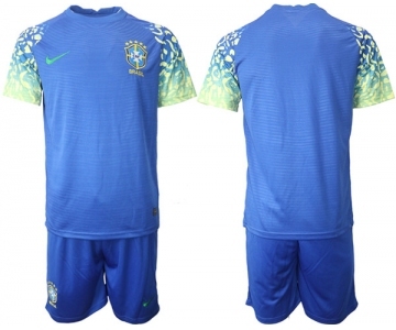 Men's Brazil Blank Blue Away Soccer Jersey Suit
