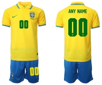 Men's Brazil Custom Yellow Home Soccer Jersey Suit