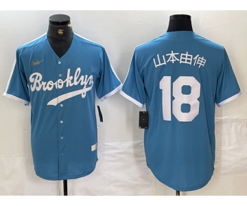 Men's Brooklyn Dodgers #18 山本由伸 Light Blue Japanese Cooperstown Collection Cool Base Jersey