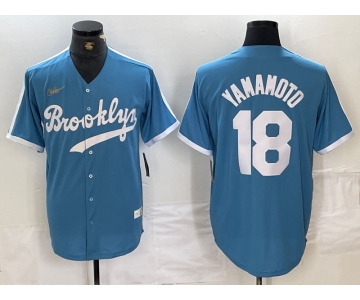 Men's Brooklyn Dodgers #18 Yoshinobu Yamamoto Light Blue Cooperstown Collection Cool Base Jersey