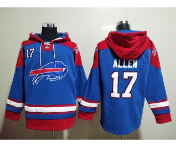 Men's Buffalo Bills #17 Josh Allen Blue Ageless Must Have Lace Up Pullover Hoodie