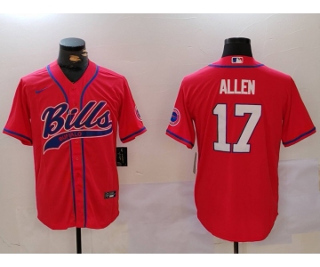 Men's Buffalo Bills #17 Josh Allen Red Cool Base Stitched Baseball Jersey