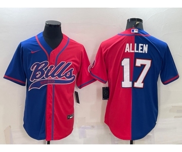 Men's Buffalo Bills #17 Josh Allen Royal Red Split With Patch Cool Base Stitched Baseball Jersey