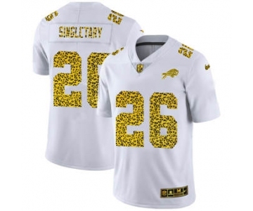 Men's Buffalo Bills #26 Devin Singletary Flocked Leopard Print Vapor Limited Football Jersey White