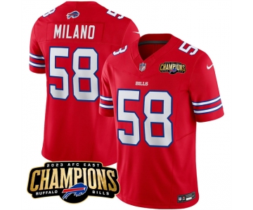 Men's Buffalo Bills #58 Matt Milano Red 2023 F.U.S.E. AFC East Champions Ptach Football Stitched Jersey