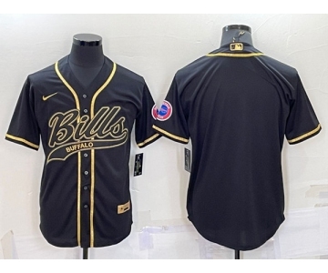 Men's Buffalo Bills Blank Black Gold With Patch Cool Base Stitched Baseball Jersey