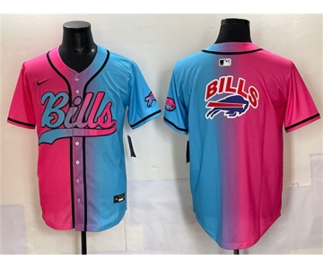 Your Position: Home>NIKE NFL Jerseys>Nike Buffalo Bills>Limited Jerseys>Men's Buffalo Bills Team Big Logo Pink Blue Limited Stitched Baseball Jersey