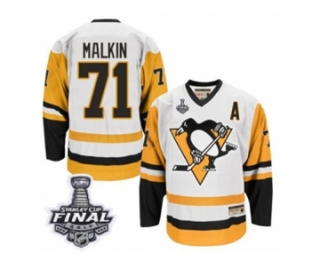 Men's CCM Pittsburgh Penguins #71 Evgeni Malkin Authentic White Throwback 2017 Stanley Cup Final NHL Jersey