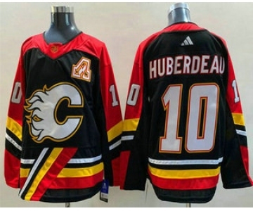 Men's Calgary Flames #10 Jonathan Huberdeau Black 2022 Reverse Retro Stitched Jersey