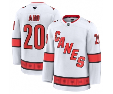 Men's Carolina Hurricanes #20 Sebastian Aho White 2024-25 Away Stitched Hockey Jersey