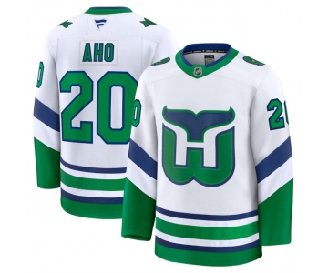 Men's Carolina Hurricanes #20 Sebastian Aho White 2024-25 Throwback Stitched Hockey Jersey