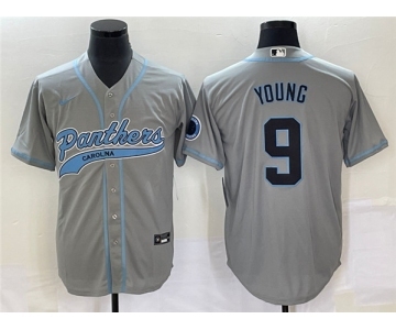Men's Carolina Panthers #9 Bryce Young Gray With Patch Cool Base Stitched Baseball Jersey