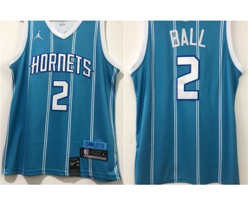 Men's Charlotte Hornets #2 LaMelo Ball Blue 2021 Brand Jordan City Edition Swingman Jersey With The Sponsor Logo