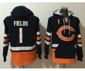 Men's Chicago Bears #1 Justin Fields Navy Ageless Must-Have Lace-Up Pullover Hoodie