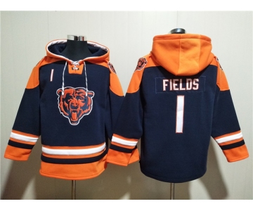 Men's Chicago Bears #1 Justin Fields Navy Ageless Must-Have Lace-Up Pullover Hoodie