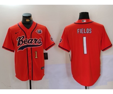 Men's Chicago Bears #1 Justin Fields Orange Throwback With Patch Cool Base Stitched Baseball Jerseys