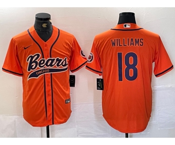 Men's Chicago Bears #18 Caleb Williams Orange With Patch Cool Base Stitched Baseball Jersey