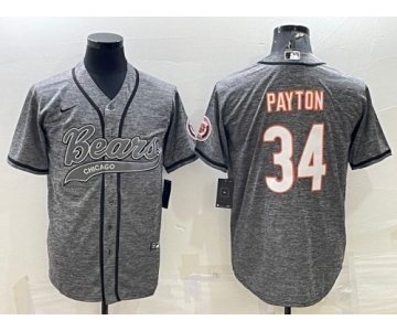 Men's Chicago Bears #34 Walter Payton Gray With Patch Cool Base Stitched Baseball Jersey