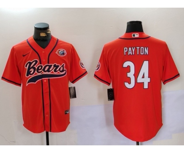 Men's Chicago Bears #34 Walter Payton Orange Throwback With Patch Cool Base Stitched Baseball Jersey