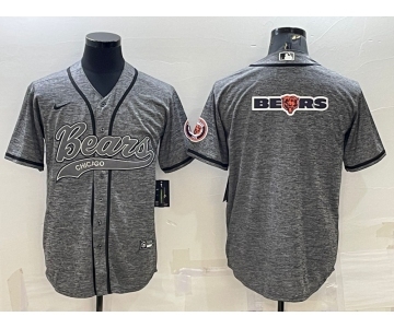 Men's Chicago Bears Grey Team Big Logo With Patch Cool Base Stitched Baseball Jersey