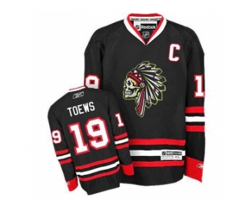Men's Chicago Blackhawks #19 Jonathan Toews Reebok Premier Black Skull Ice Hockey Jersey