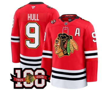 Men's Chicago Blackhawks #9 Bobby Hull Red 2025 Home 100th Anniversary Stitched Hockey Jersey