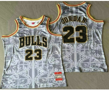 Men's Chicago Bulls #23 Michael Jordan Grey Snakeskin Hardwood AU Throwback Jersey