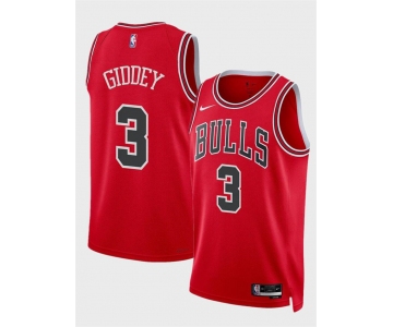 Men's Chicago Bulls #3 Josh Giddey Red Icon Edition Stitched Basketball Jersey