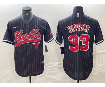 Men's Chicago Bulls #33 Scottie Pippen Black Pinstripe Cool Base Stitched Baseball Jersey