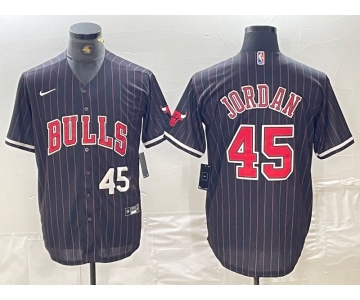 Men's Chicago Bulls #45 Michael Jordan Number Black Pinstripe Cool Base Stitched Baseball Jersey