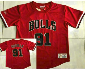 Men's Chicago Bulls #91 Dennis Rodman Red Short Sleeved AU Throwback Jersey